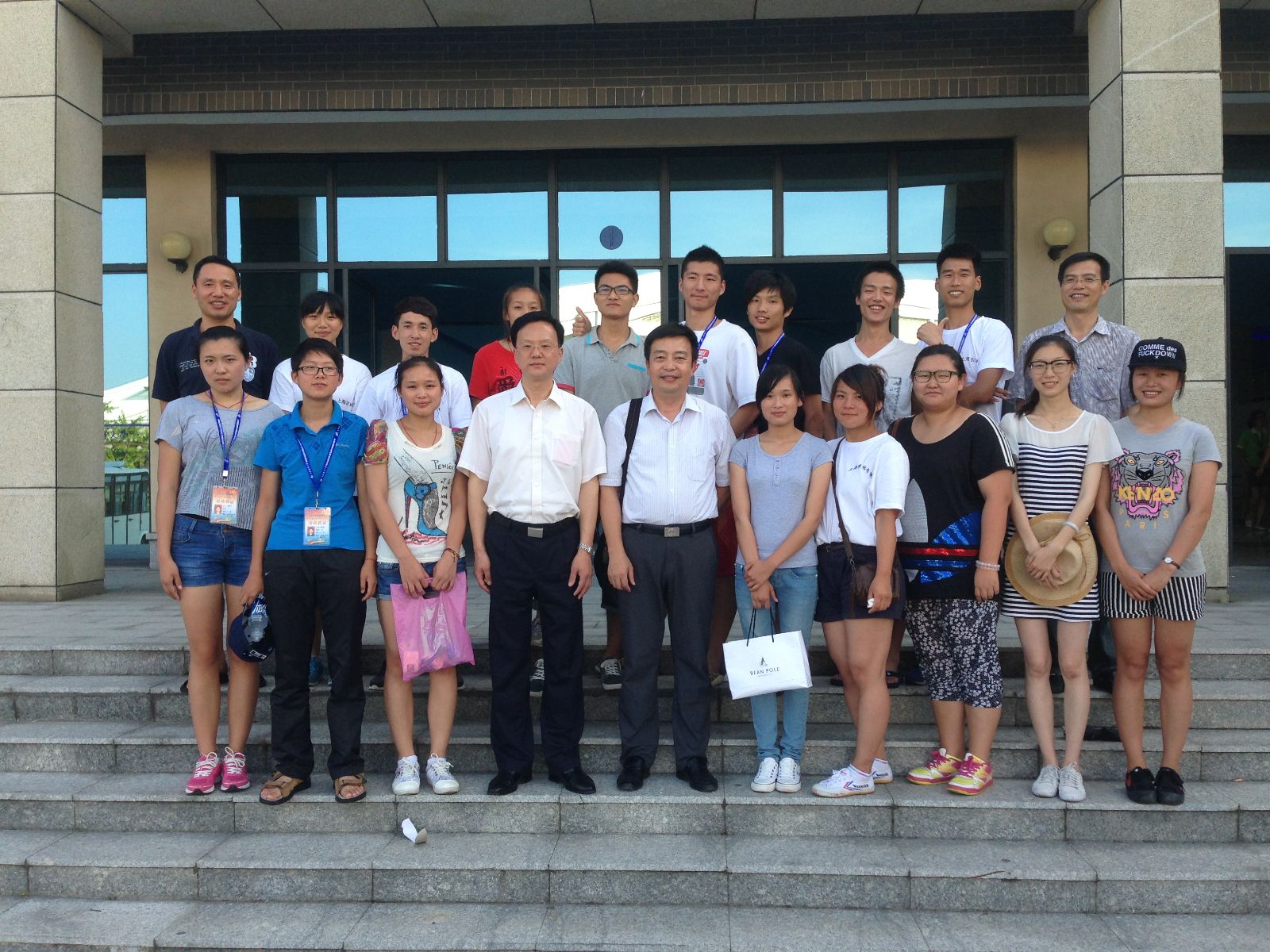 院领导、教师和学生运动员们合影