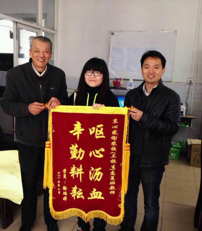 新年伊始,喜报不断。2015年3月25日,第二轻工业学校12级徐瑶婷同学家长远道而来,为学校赠送了印有“呕心沥血,辛勤耕耘”的锦旗,向一直关心帮助徐瑶婷的高复班老师们表示了诚挚的谢意。