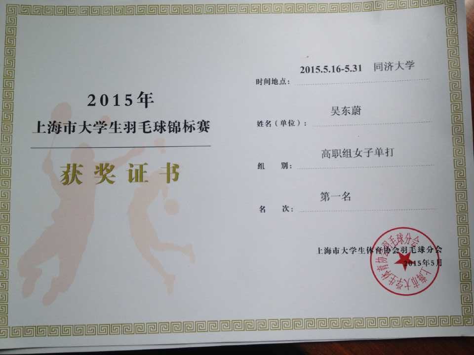 2015年上海市大学生羽毛球锦标赛(高职组)已于2015年6月4日落下帷幕,我院以取得女子团体第三名、男子团体第四名;单打第四名的好成绩结束了本年度的比赛。