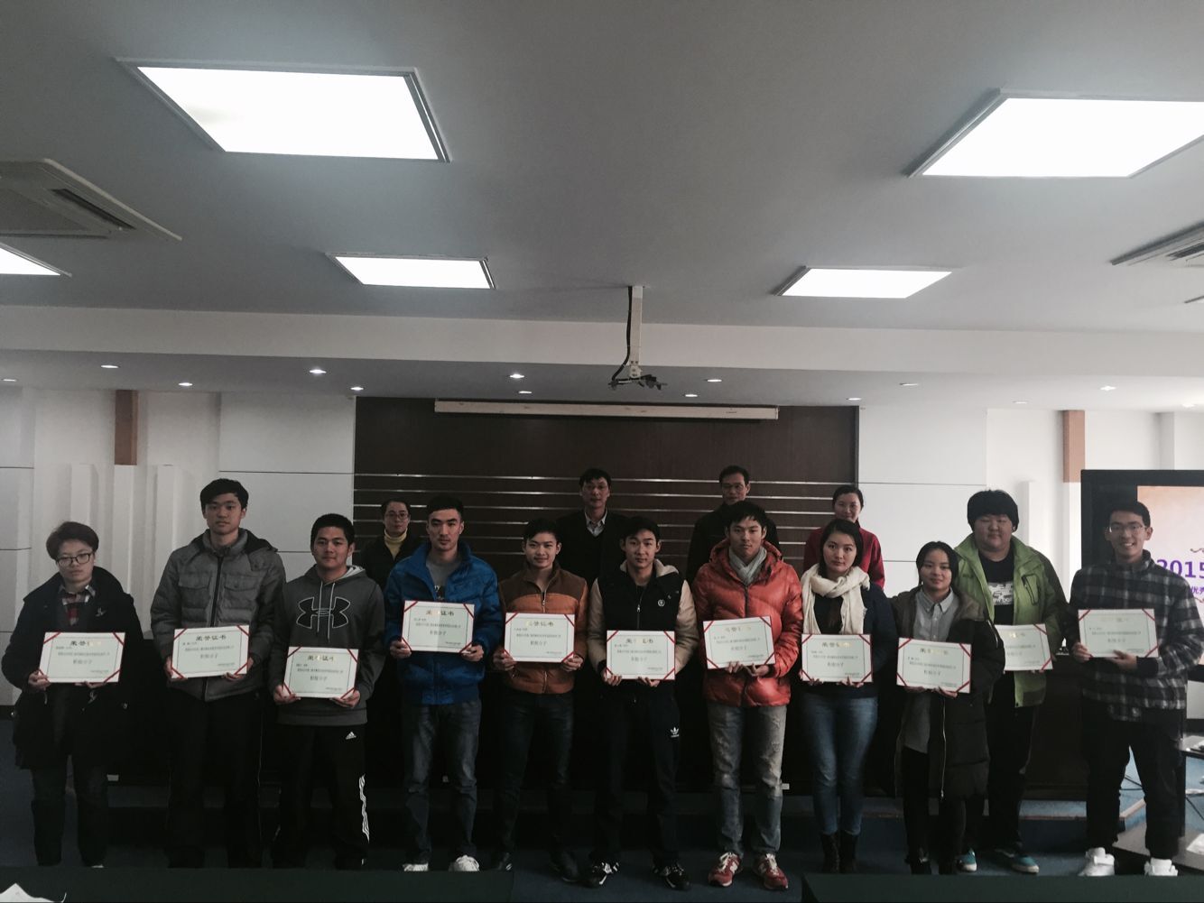 俞锦禄副书记副院长,给获奖者颁发证书并作了总结发言,对我院2014-2015年度开展的各项体育工作进行了充分的肯定,尤其是体育教学改革方面不仅开设了游泳、旱地冰球课,还开设了具有学院特色的舞龙社团。2015年我院开展了跆拳道、冰壶、健身、羽毛球、网球等丰富多彩的体育社团活动,对站在一线的体育教师给予高度的认可,对取得了松江区乃至华东区团体第一名的优异成绩表示祝贺。希望今后通过开展具有特色学生体育社团吸引更多的学生参与体育锻炼,让全体学生充分体验体育运动带来的乐趣,充实学生的校园文化生活。同时也希望体育教师在体育教学及科研工作再接再厉,全面提高学生的身体素质,促进学生更好的健康发展。