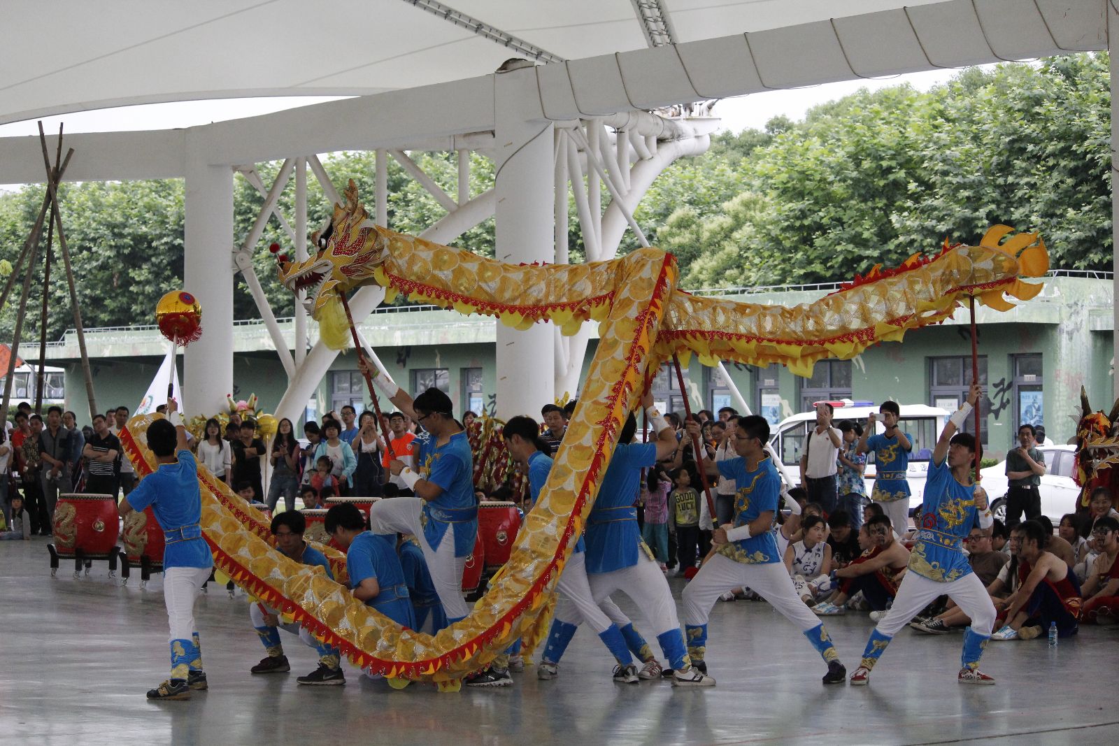 上午10时30分,现场热闹非凡,八字舞、首尾穿(越)肚、翻滚动作……通过历史沉淀、富有农业特色的上海市农业学校舞龙率先走上了“端午节活动”的舞台。精彩的舞龙、动听的皆歌、专业的表演赢得了现场观众们阵阵掌声。
