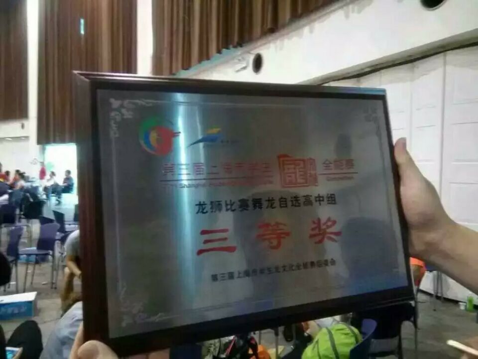 我校参加了中学组龙狮赛,荣获本届舞龙自选比赛的三等奖,全市共有30支队参加了舞龙自选、传统舞龙比赛。