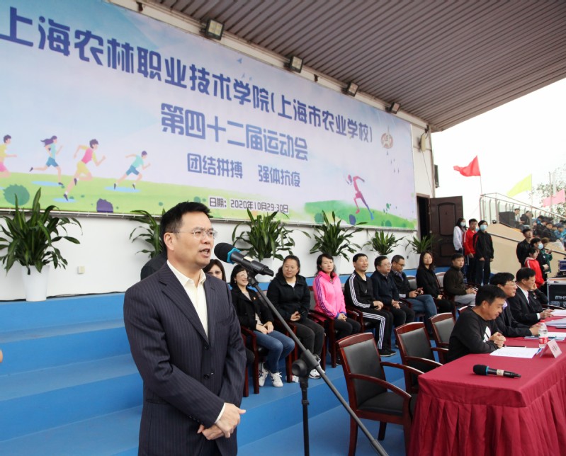 学院院长魏华代表两校领导班子致开幕辞,园林系陆玺豪同学、基础部刘培君老师分别代表运动员、裁判员宣誓,党委书记蔡红宣布运动会正式开幕。