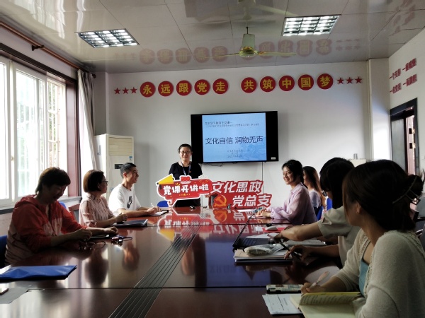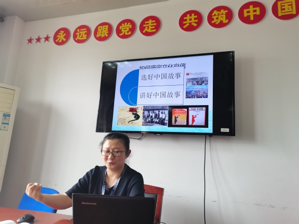 学党史、悟思想,结合党史学习教育,学院“党课开讲啦”6月正式启动,文化思政党总支积极响应,2021年6月4日下午两点半,在体育场会议室,党总支副书记袁少英以《文化自信、润物无声》为题,上了一堂生动而深刻的四史学习教育党课。