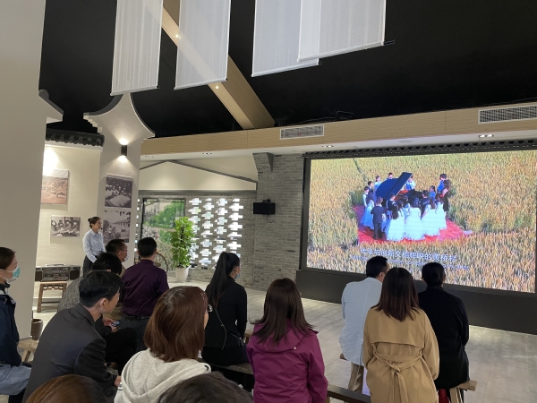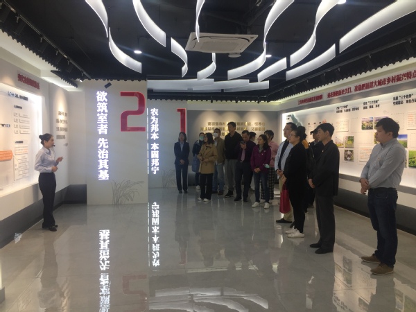 全体人员在黄桥村参观了乡村振兴馆、村史馆、农产品展示馆、农村集中养老中心、新型农居样板房等。黄桥村是全国第一批农民集中居住和乡村振兴美丽乡村建设双试点村,展馆讲解员从黄桥村的地理概貌、及其振兴发展历史、“三农”改革的定位目标、集体经济发展的趋势和多种有效路径等方面做以细致介绍,让大家深刻感受到新时代中国特色社会主义思想是指导“农业强、农村美、农民富”的核心力量,党支部与基层党组织在乡村振兴治理中发挥着重要的战斗堡垒作用。