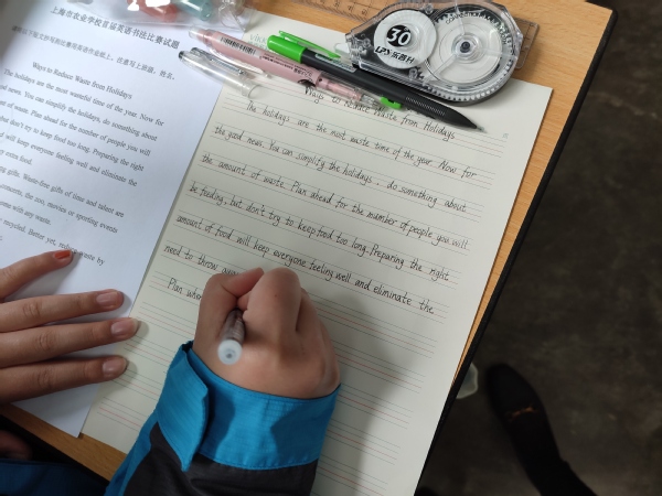 为了进一步提升中职英语教学水平,规范英文书写,提升学生学习英语兴趣。中职英语教研室于2021年11月16日举办了英语书法比赛,上海市农业学校全体学生参加。