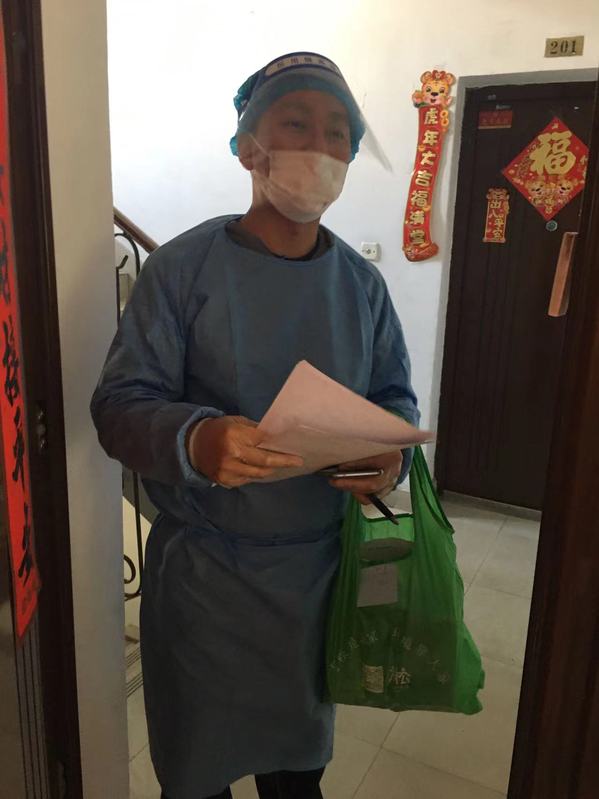 马伟老师在爱人作为医务工作者多日来奋战在抗疫前线情况下,一边独自照顾孩子、顺利完成教学任务,一边挤出时间在4月4日下午帮助玉树南苑小区居委会分发爱心物资,用大爱书写共产党员的精神力量。