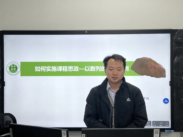 交流会上,成建平以“如何实施课程思政——以数列的极限为例”为题,从实施课程思政的策略、通过“极限的概念”教学案例举例,阐述了如何挖掘课程思政元素。