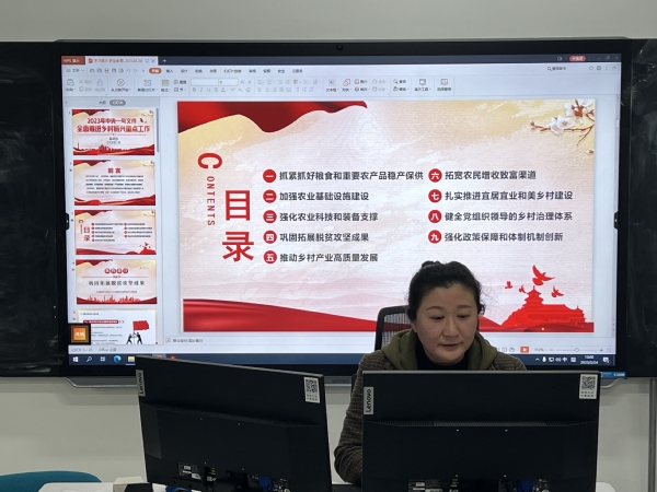 为响应学院党委号召,深刻学习中央一号文件精神,基础部于2月24日召开了专题学习2023年中央一号文件《关于做好2023年全面推进乡村振兴重点工作的意见》,基础部全体教职工参与学习。会议由文化思政党总支书记袁少英主持。
