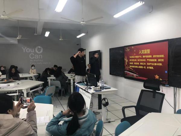 会议第一项,孔黄生老师带领刘培君重温了入党誓词,预备党员刘培君表示一定不负党的使命,秉承初心,为广大师生积极服务。