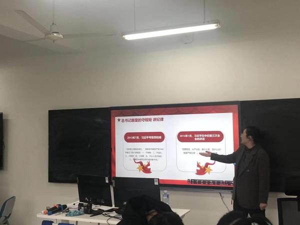 最后,文化思政党总支书记袁少英开展《守纪律、讲规矩”》党课讲座。她从6个方面,即习近平总书记眼里的守规矩,讲纪律、什么是党的政治纪律和政治规矩、守纪律讲规矩的具体要求、深刻认识守纪律讲规矩的重大意义、准确把握党规党纪的深刻内涵、模范执行党的纪律和规矩,结合实际案例为大家上了一堂生动而又严肃的党课。并希望我们每位同志都必须深刻认识、准确把握、模范执行。