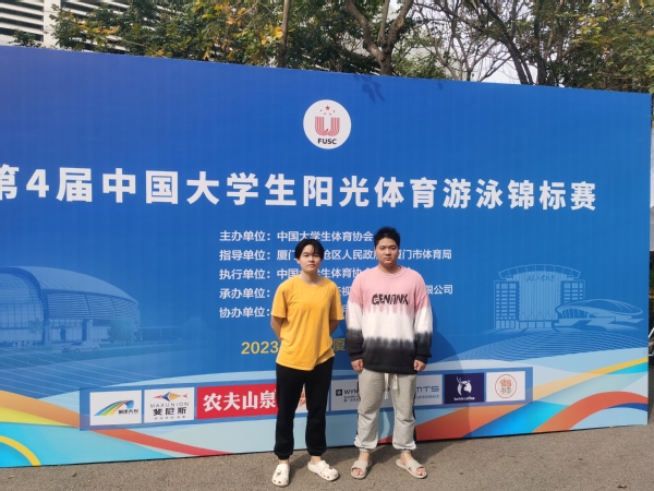 我校游泳队共派出2名运动员参赛,分别是来自风景园林系的蔡玉苑和生物医药与健康系的潘国盛。