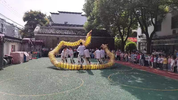 松江区机关幼儿园创办于1956年,是一所历史悠久的一级幼儿园。其办园特色就是传承中国传统文化,发扬民风民俗民文化。园内建有羔羊跪乳、黄香温席、岳母刺字等十多个栩栩如生的景观及生活馆、民俗馆等文化创意活动室。大班小朋友每天晨练都会练习舞龙动作,进行舞龙文化学习。此次活动将支部文化品牌和传统文化教育有机结合,使大小朋友们都进行了一次身心结合、荡涤人心的文化体验,整个活动充满了意义。