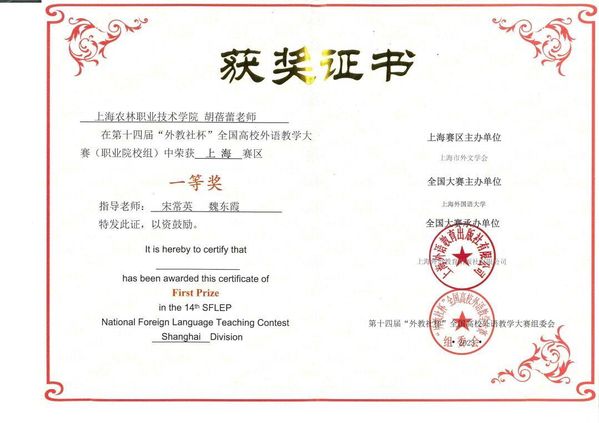 由上海市外文协会主办,上海外语教育出版社承办的第十四届“外教社杯”全国高校外语教学大赛上海赛区决赛于2023年暑期成功举办。经过激烈角逐,我校基础部胡蓓蕾老师获得职业院校组一等奖。