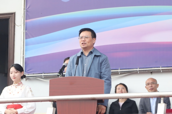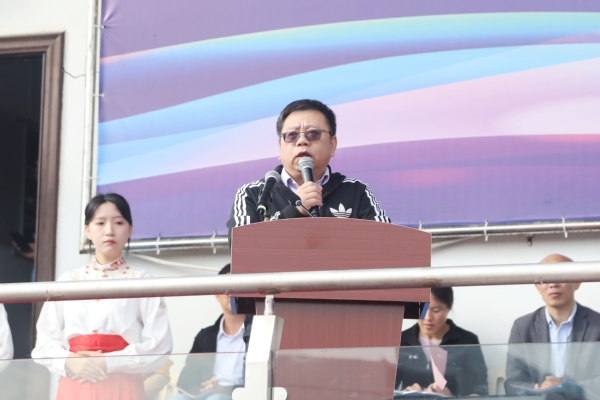 国旗队、校旗队、红旗队、鲜花队、各系运动员和工会方队先后入场。他们迈着整齐的步伐,喊着嘹亮的口号,昂首挺胸、意气风发地从主席台前正步走过,展示各系部风采,接受领导检阅。基础部费梓航老师代表运动员、裁判员宣誓,党委书记蔡红发表讲话并宣布运动会正式开幕。