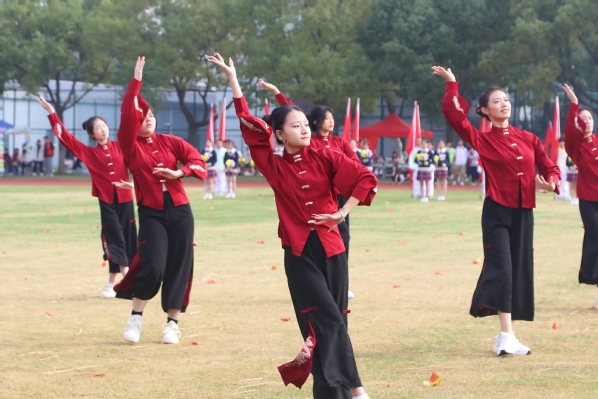 开幕式上,表演节目精彩纷呈。有非物质文化遗产《龙鼓盛世欢歌》,展示了中国鼓乐的魅力,鼓声震天,节奏明快,寓意着盛世欢歌,表达了对国家繁荣昌盛的美好祝愿;《第一套戏曲广播体操》,将中国传统的戏曲元素与现代的广播体操相结合,形成了一种独特的健身方式,既有传统的韵味,又有现代的时尚感;《学生团体操表演》,呈现了农林学子的活力,整齐划一的动作,彰显了他们的精神风貌和团队协作能力;《大旗舞-锦绣农林》,以大旗为道具,通过舞蹈动作和音乐,显现了农林学子的壮丽景象和人们的勤劳精神。