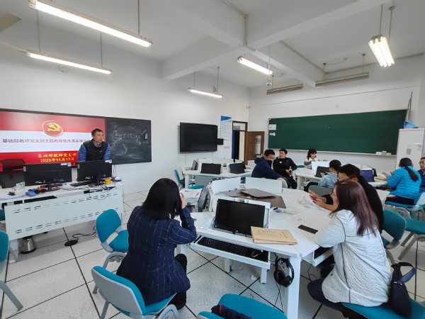在学习贯彻习近平新时代中国特色社会主义思想主题教育的过程中,基础部教师党支部深入学习贯彻习近平总书记关于主题教育系列重要讲话和重要指示批示精神,提高政治站位、强化政治担当。11月17日,支部在综合楼306召开整改落实情况自查报告主题教育会议。