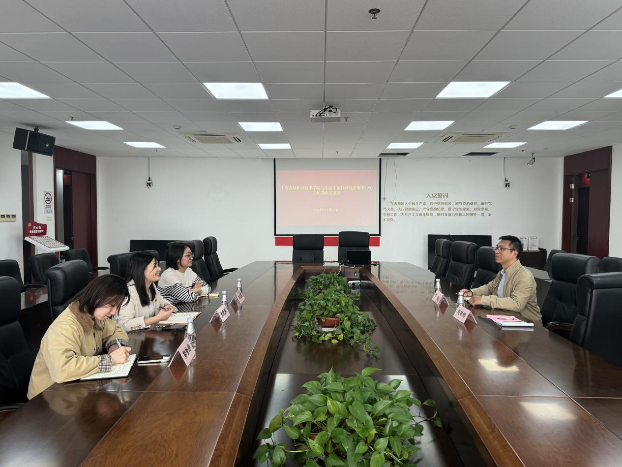 为持续发挥党建示范引领作用,加强党组织间的交流与合作,11月13日,文化思政党总支来到松江区小昆山镇社区党群服务中心走访调研。文化思政党总支书记李杰、学院艺术课课程负责人赵琳娜与小昆山镇社区党群服务中心党支部书记、副主任夏慧萍、文体所负责人陆佳妮、文体干事郭梦婷共同进行了交流。