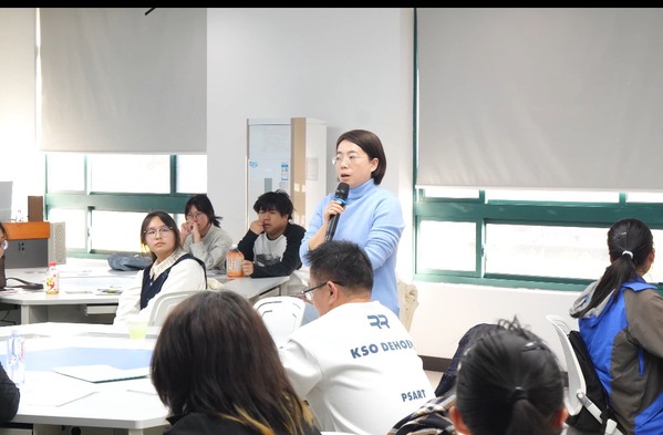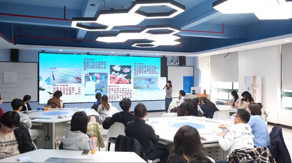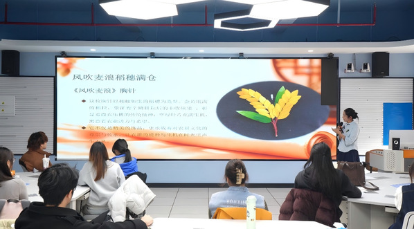 下午的活动在综合楼301会议室开展学生作品汇报及分享,活动由艺术课教师赵琳娜主持。学院基础部主任宋常英首先致辞,她强调了非遗传承对于文化育人与培养学生工匠精神的重要意义,并肯定了基础部在跨学科教学实践中所取得的成效。