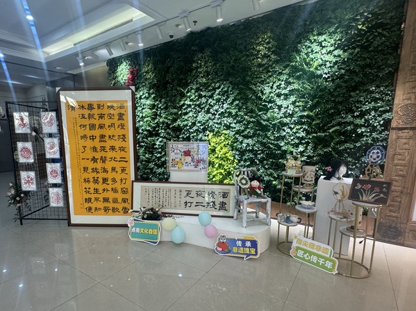上午的活动在综合楼大厅拉开帷幕,现场分为静态成果、动态展演及互动体验环节。静态展区内,展示了学生艺术课程非遗创新优秀作品与教学实图陈列。学生们创作的非遗黏土、剪纸、油纸伞螺钿、钩针、缠花等作品,以工匠精神,显创意技能,吸引师生们的驻足欣赏。