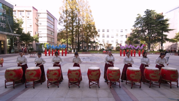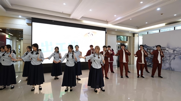 动态展演精彩不断。学院田山歌队以带有地方特色的新浜山歌《出工曲》《问黄蟹》两首作品,展现了原生态的表演,赢得现场阵阵掌声;随后震撼人心的《鼓动山河·龙腾狮跃》鼓乐龙狮表演点燃全场气氛。
